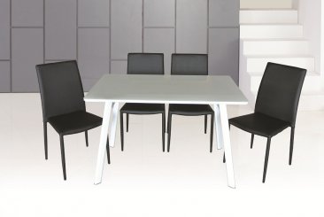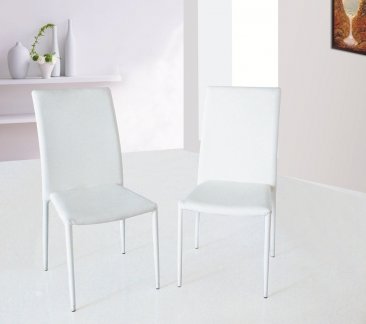 The modern dining leather chairs will accent any environment. Available in Black, White, and Chocolate, these leather covered chairs will give you infinite matching options.
