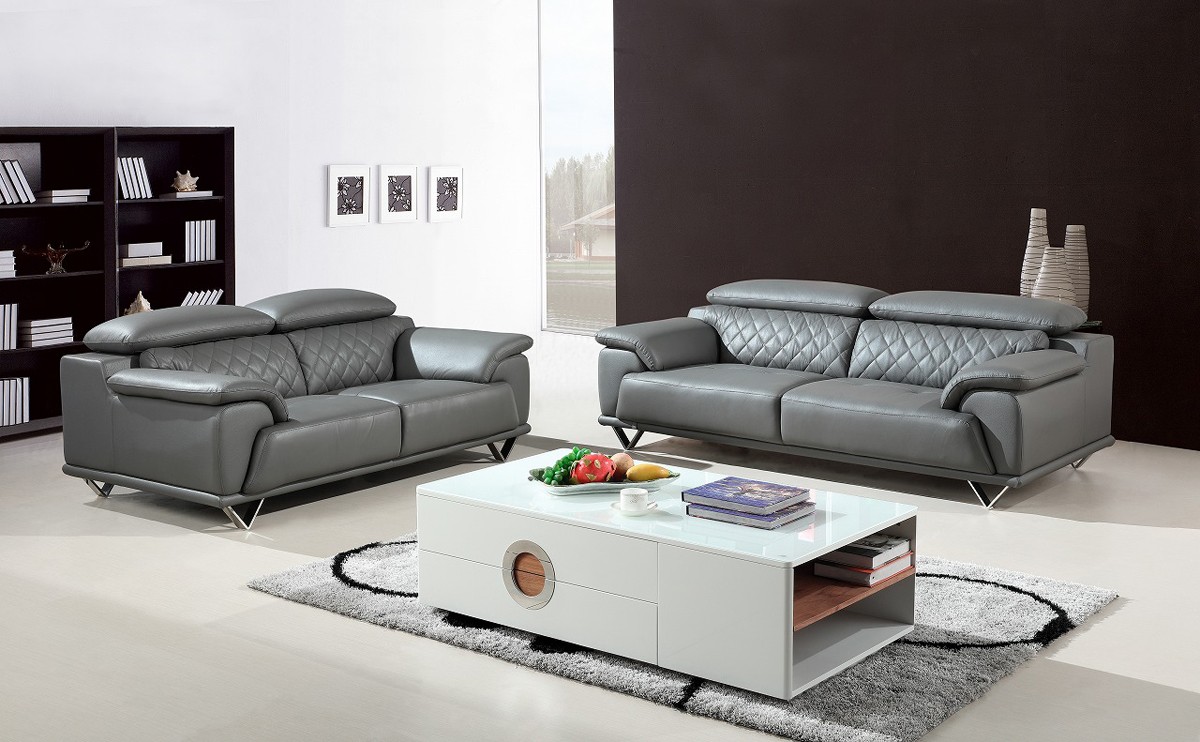 Divani Casa Wolford Modern Grey Leather Loveseat