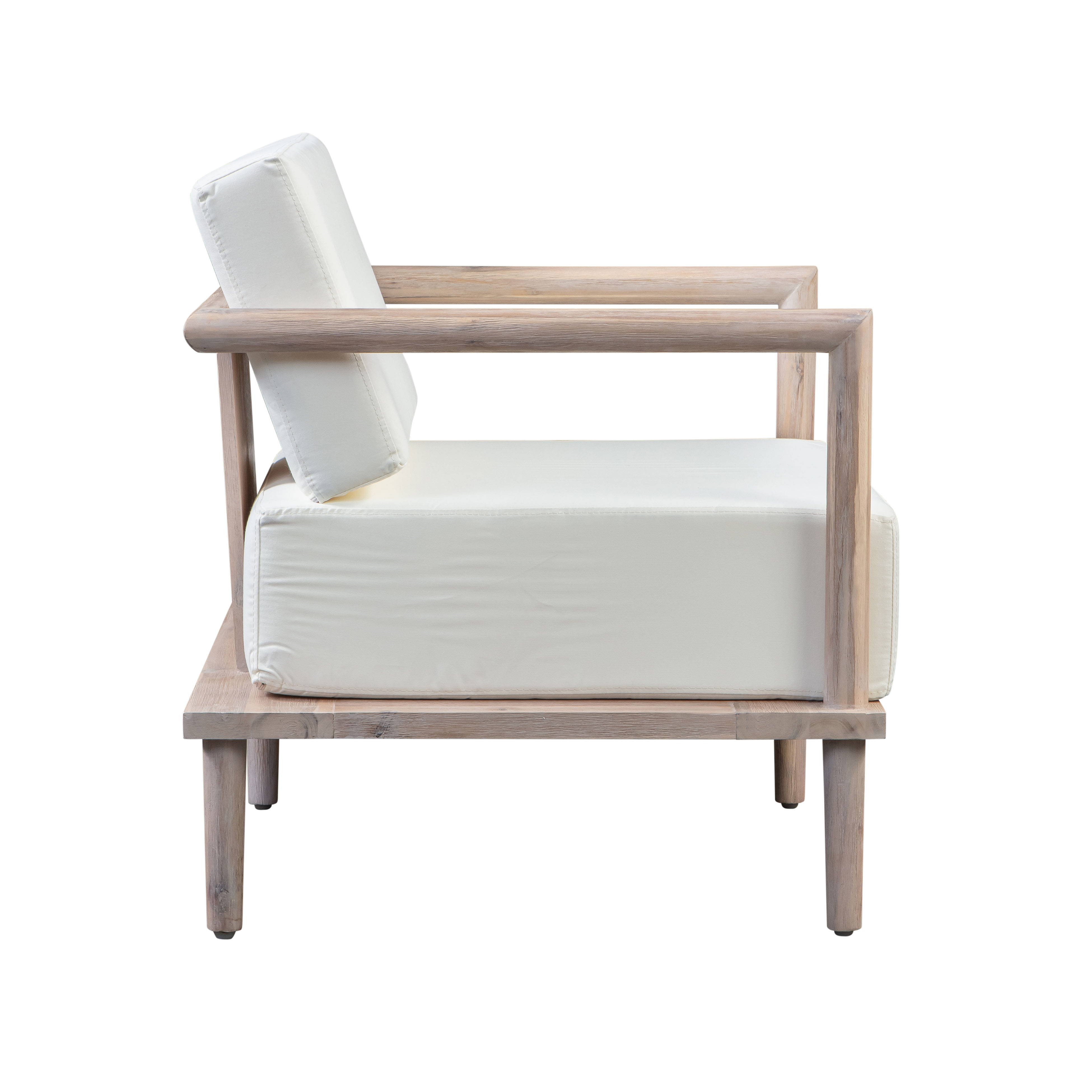 Outdoor living takes on a new meaning with the Emerson Outdoor collection. Sleek and linear, the Emerson Collection offers that modern lounge look in your outdoor space. The acacia frame beautifully complements the sophisticated cream upholstery and offers support, comfort and durability. Beware, you may never want to go back inside!