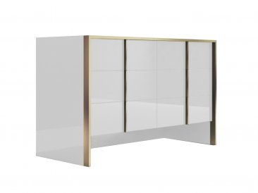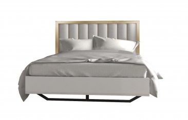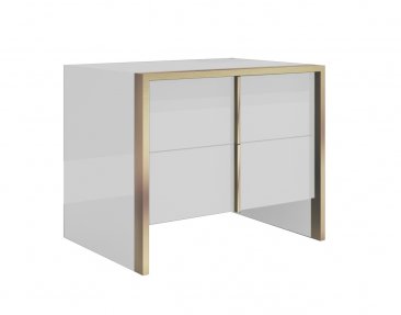 The Fiocco Bedroom is our newest Italian set that redefines luxury. The “Gold Leaf” trim in front of the case-goods is replicated on the vertical handles of the drawers and it is scaled to deliver a tasteful design that is rich but not overwhelming. Gold finishes are an everlasting trend in luxury furniture so the glossy white lacquer color. The flooding design of the bed suspended with a metal central bar is matched by the one on the case goods. The upholstered headboard is covered in eco-leather, a material that stands well when in touch with human hair.