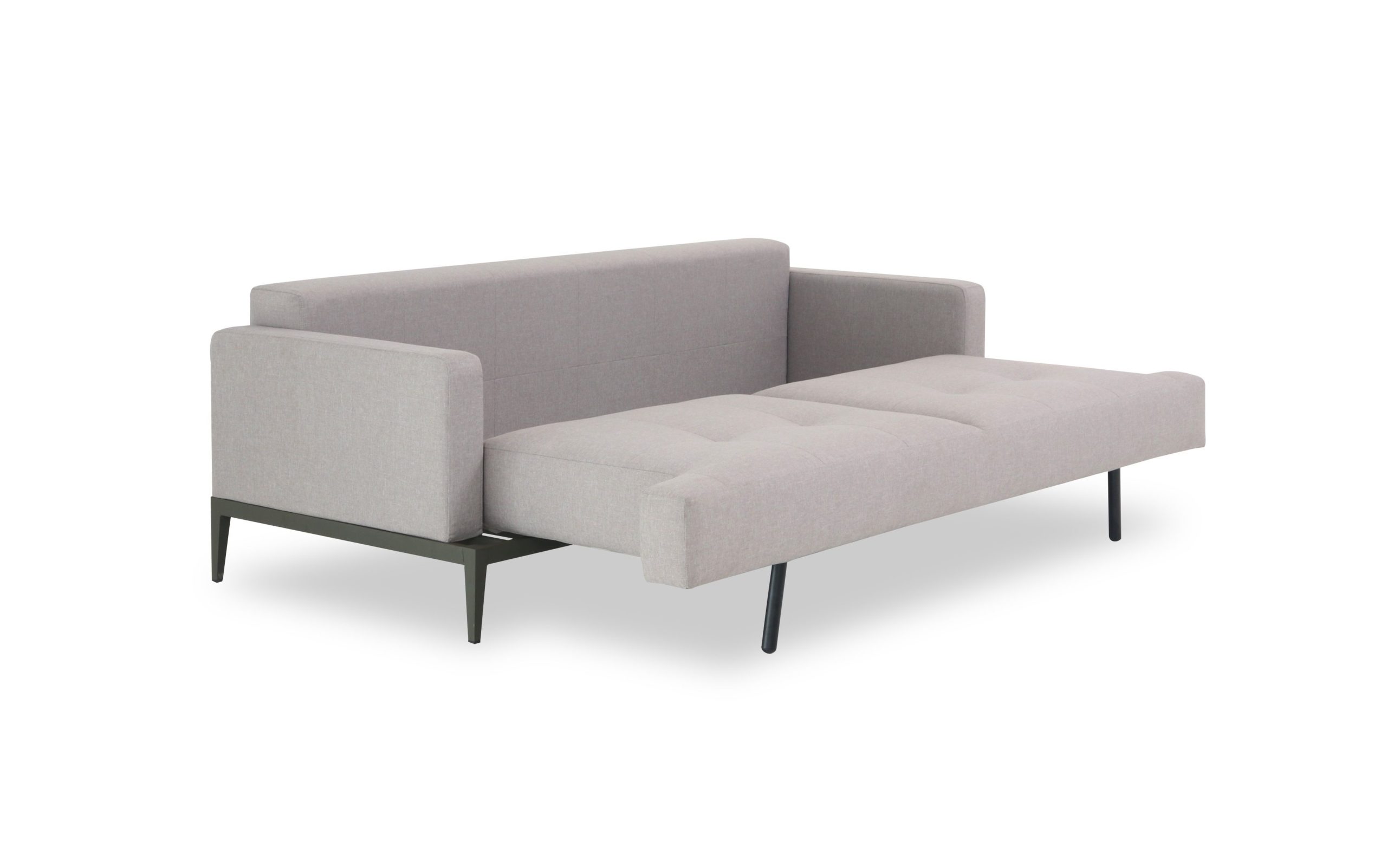 JK059 Sofa Sleeper J&M is proud to present our newest addition to our premium Sofa Sleepers. The JK059 featuers a clean symmetrical look, a gorgeous light grey fabric to match a number of rooms, and functionality. This sofa bed can be extended to open into a fully functional spacious sleeper. The legs are crafted in an attractive gunmetal grey. Perfect for offices, dorms, guest rooms and any space where an extra sleeper works.