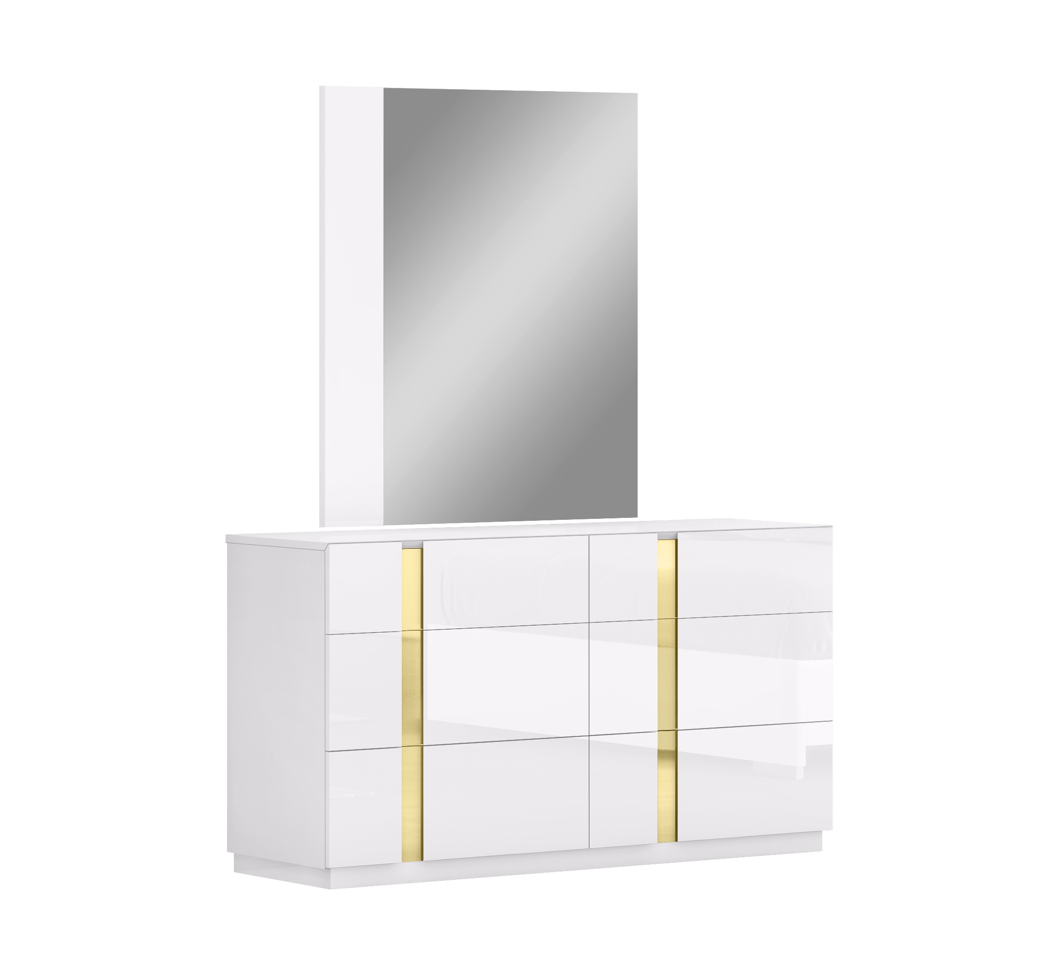 The Kyoto Bedroom Collection by J&M is the newest addition to our Modern Bedroom Category. The Kyoto bedroom features a white high gloss lacquer finish, accented by polished gold. The Headboard features an LED light strip that runs parallel to the gold accent bisecting the headboard horizontally. All case good drawers feature our premium soft close mechanism. The sleek and modern design of the Kyoto collection is sure to complement and accentuate any contemporary home.