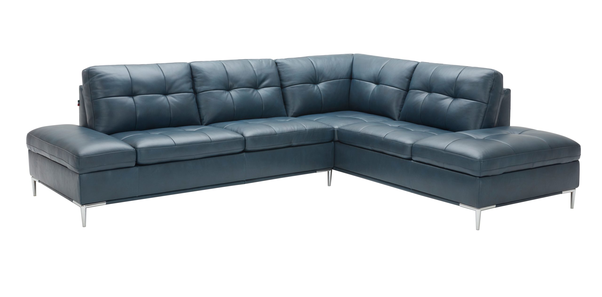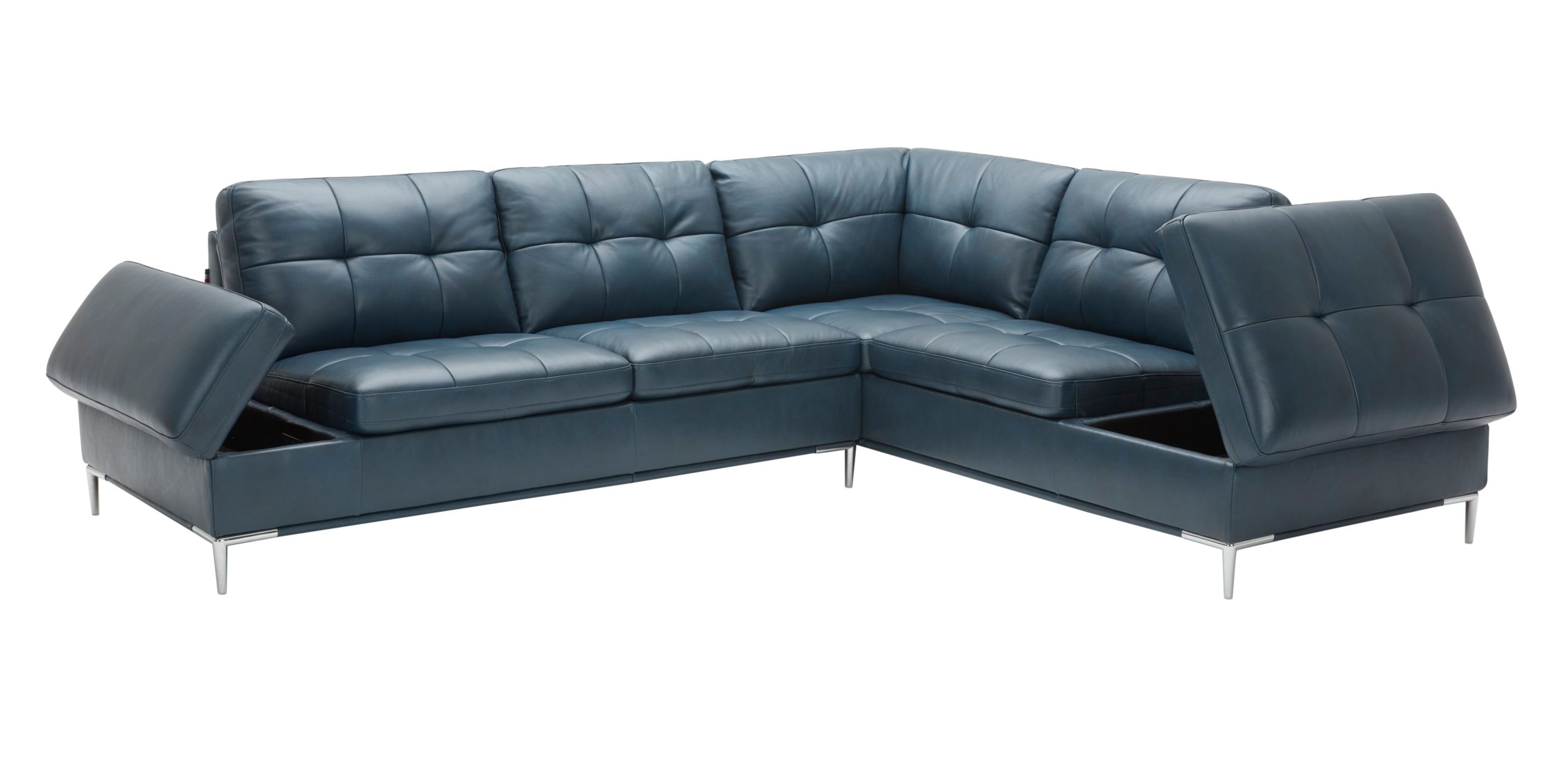 The Leonardo Sectional in Blue J&M Furniture is proud to introduce the Leonardo Sectional to our lineup. Featuring storage on both sides, the Leonardo is designed with accessibility and function in mind. The Tufted seat cushions provide comfort and a clean look to this sectional, while the gunmetal grey legs add to its modern aesthetic. On top of the wonderful storage capacity, the Leonardo also features USB Connectivity on one side, perfect for charging all your devices while you sit back and relax. Available in a Navy Blue, White, Silver Grey, and Grey, this sectional is sure to fit right into your home. Dimensions: 111″ L x 90”D x 33” H Seat Height: 18″ Seat Depth: 22″