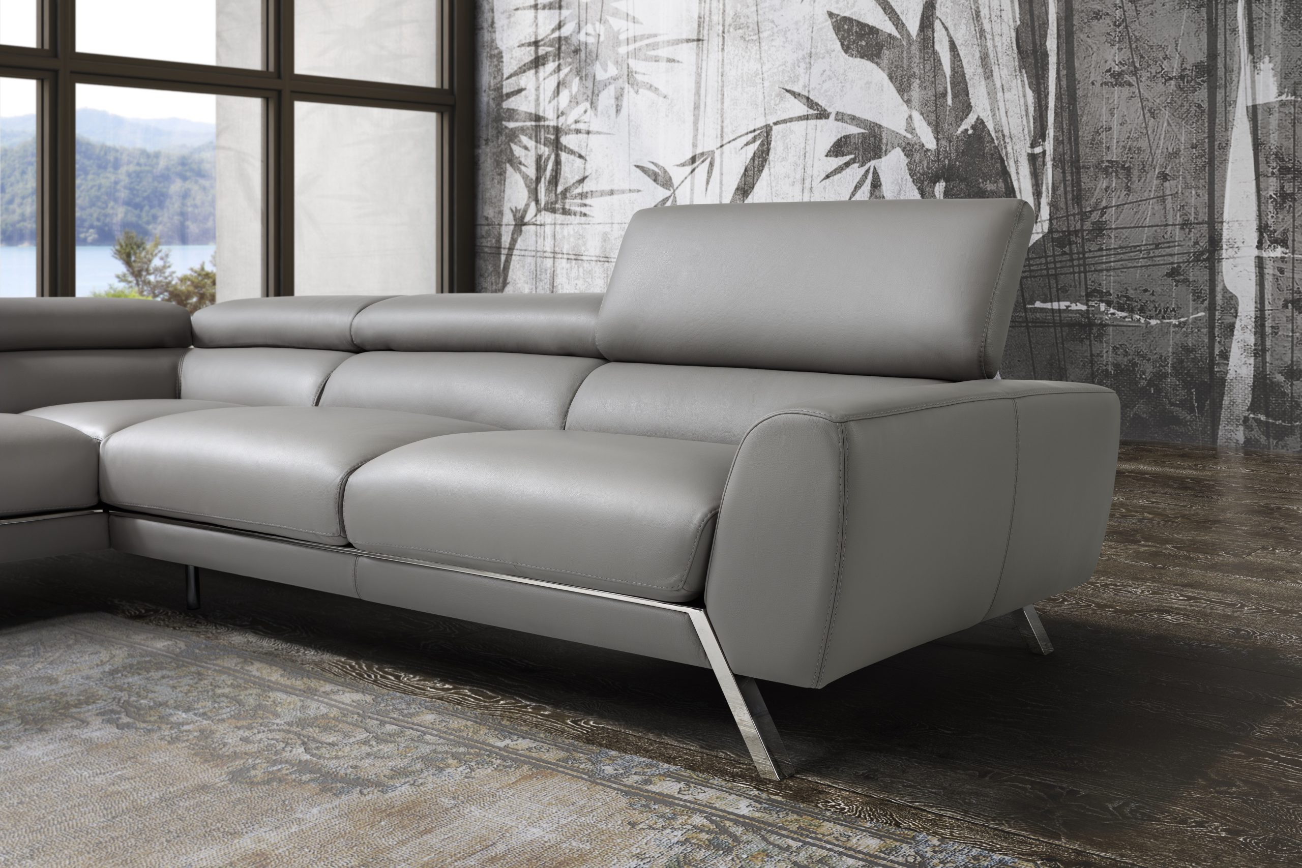 The Mood Sectional in Grey J&M is proud to introduce our newest Premium Italian Leather Sectional Collection. All of these items are crafted to perfection in Italy using the highest quality materials. Upholstered in thick cut premium Italian leather all around, these products are all stocked items & can be special ordered in a wide array of colors & configurations. *Please note stocked item is as shown in picture, special orders take 12-16 weeks to arrive. Dimensions As Shown: 117.7″ x 89.7″ x 27.5-35.8″H