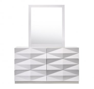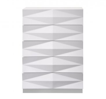 Verona Bedroom by Blucci Contemporary Furniture offers a fresh aim and outlook of the modern bedroom. With case goods featuring unique 3D surfaces, this white lacquered finish set will enhance the look of bedrooms of different sizes and colors. The leatherette headboard provides elegance as well as a classic look to the bedroom set with beautiful rhinestone accents. Whether choosing the entire set, its individual platform bed, or any of the case goods, you can rest assured that this quality furniture is meant to last. Our case goods are equipped with full extension glides.