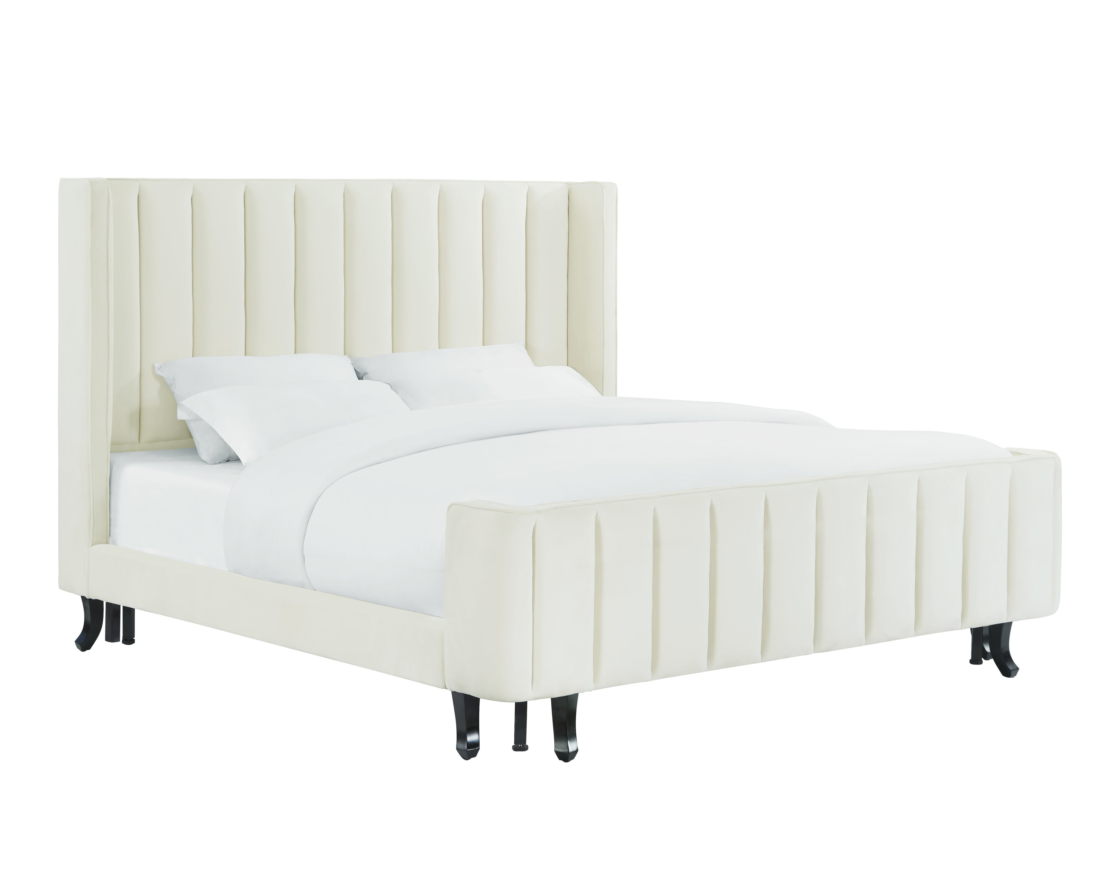Upgrade your bedroom with something lovely. Our Waverly Bed subtly dazzles with soft cream velvet and clean, wide channel tufting. We love the versatility of this piece in any bedroom and know you will too. Available in queen and king.
